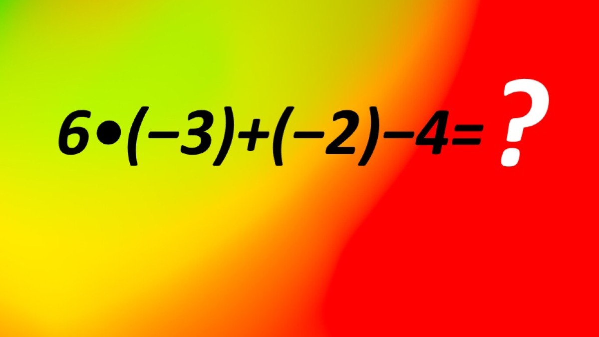 В вашем распоряжение непростое задание, взгляните на рисунок. Пример для устного счета 6•(−3)+(−2)−4 запутает любого, всего 12 секунд дается на поиск решения, и калькулятор тут не поможет. Отличники уже на полпути к ответу, не отставайте.