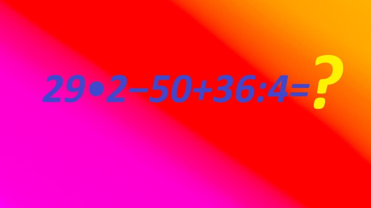 Внимание на изображение, пример для устного счета ждет своего часа. Выполните вычисления 29•2−50+36:4 без калькулятора, всего 15 секунд дается на такое задание школьникам. Наверняка вы справитесь еще быстрее.