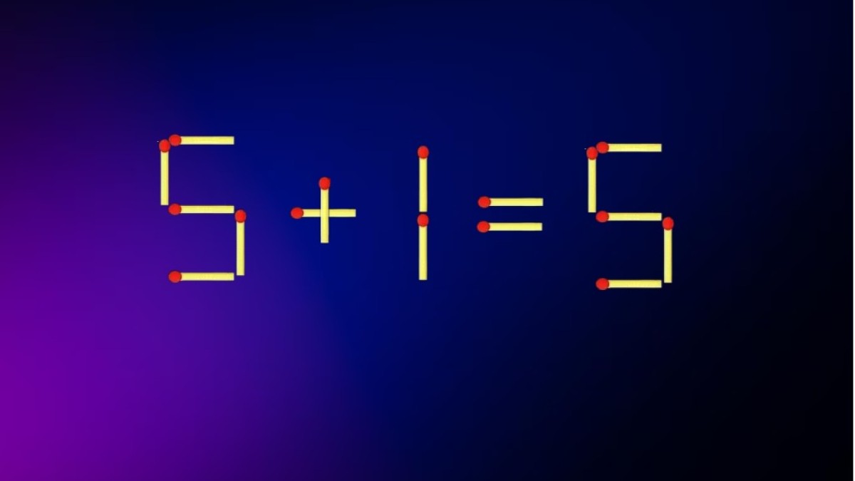 В вашем распоряжении каверзная загадка. Пример «5+1=5» составлен из спичек. Это неверное равенство необходимо исправить, передвинув всего одну деталь. Найдите спичку, которая делает здесь погоду.