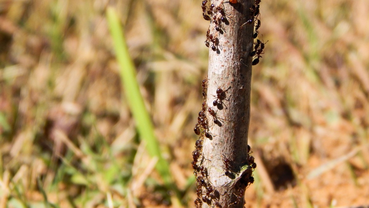Липкий пояс. Способ подходит для плодовых деревьев — яблони, вишни, груши. Он блокирует пути муравьёв. Возьмите стеклоленту и обмотайте ею ствол на высоте 30-50 см от земли. Поверх стеклоленты намотайте липкую ленту от мух. Обновляй ленту раз в 1-2 месяца, особенно после дождей. Муравьи прилипнут и не смогут подняться по стволу.