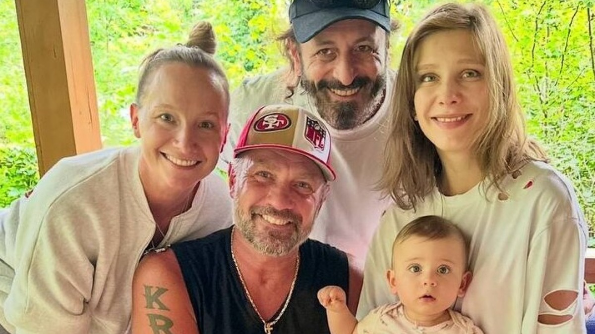 В кадре она с мужем Ильёй Авербухом, с дочкой Лией, и с крёстным Лии Романом Костомаровым с женой Оксаной Домниной. Фото сделали на веранде в доме семьи.