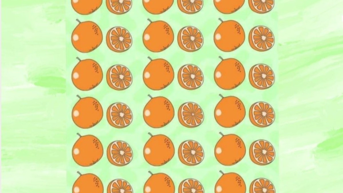 Часть апельсинов целая, часть — разрезана пополам. Среди них есть только один, который отличается от остальных небольшой особенностью.