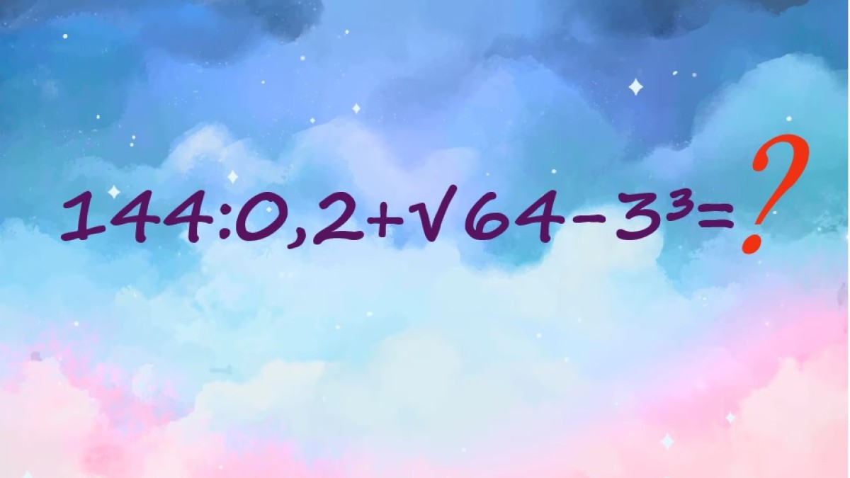 В вашем распоряжении каверзное задание для устного счета. С примером 144:0,2+√64-3³ вам не поможет калькулятор, вся надежда на собственные мозги. В средней школе вы точно практиковались в таких вычислениях, давайте отыщем в памяти нужные знания.