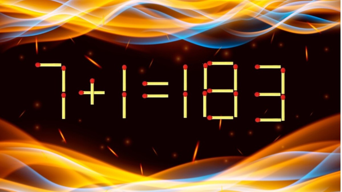 Внимание на иллюстрацию, перед вами спичечная головоломка. В равенстве «7+1=183» намеренно допущена ошибка, необходимо исправить запись. Переместить разрешается всего одну спичку, принимайтесь за дело.