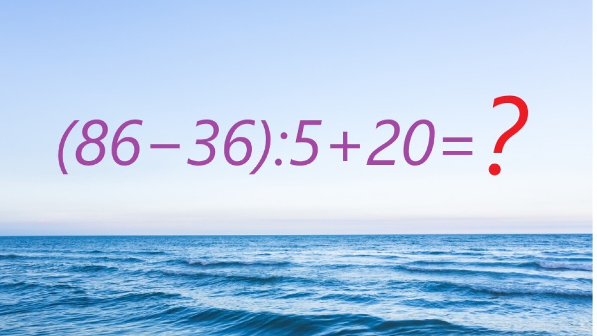Посмотрите на иллюстрацию, мы приготовили для вас непростой пример. Вычислить (86−36):5+20 за 15 секунд смогут только обладатели высокого интеллекта. Докажите, что вы в их числе.