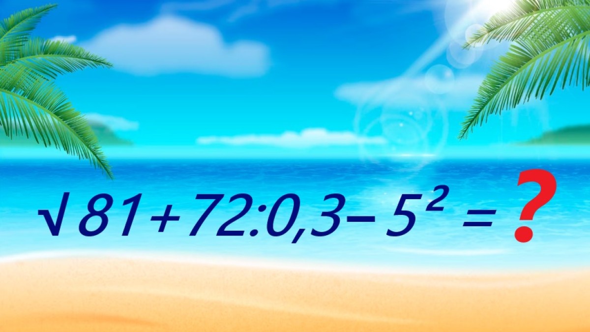 Взгляните на иллюстрацию, перед вами задание по математике. Устный пример √81+72:0,3−5² ждет верных действий, вы покажете свое мастерство, если дадите ответ за 12 секунд. Придется поторопиться.