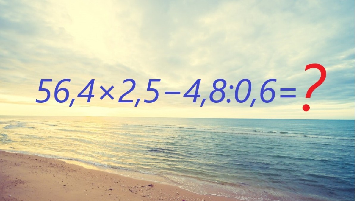 В вашем распоряжении каверзный пример для устного счета. Постарайтесь высчитать 56,4×2,5−4,8:0,6 всего за 20 секунд, чтобы почувствовать себя в ряду отличников.