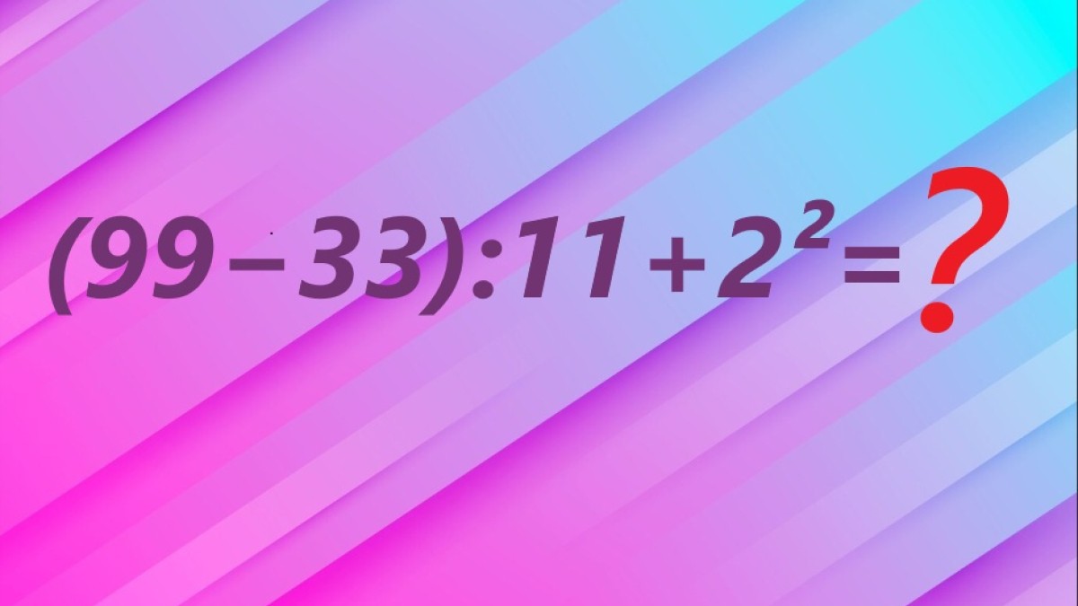 Возведение в степень всегда имеет приоритет, с него и начинаем: 22=2×2=4. Вторым шагом станет вычитание в скобках: 99-33=66. Следом за ним идет деление: 66:11=6. Мы в одном шаге от победы, складываем 6+4=10, мастера отлично показали свои возможности.