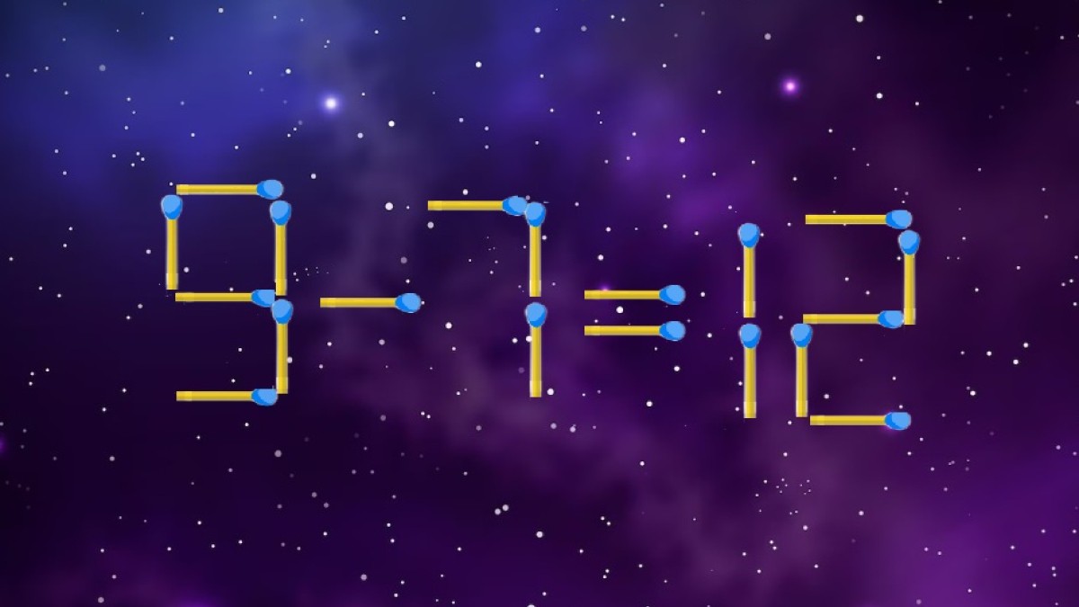Посмотрите на иллюстрацию, вас ожидает загадка со спичками. В равенстве «9-7=12» намеренно допущена ошибка, давайте восстановим арифметическую справедливость. Вот только передвинуть разрешается всего одну спичку, задачка не из легких.