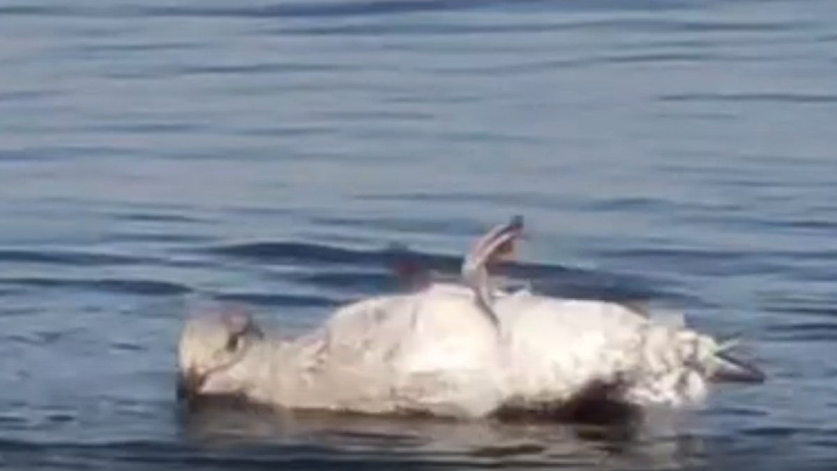 Птенец чайки проплыл на спине по Кольскому заливу. На видео юную пловчиху запечатлела жительница Мурманской области Ольга Морозова.