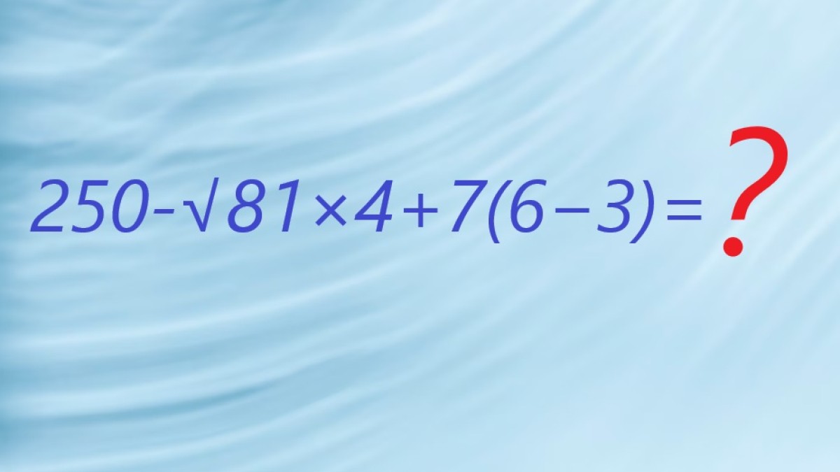 Внимание на иллюстрацию, перед вами пример для устного счета. Вычислить 250-√81×4+7(6−3) в сжатые сроки смогут только обладатели блестящего интеллекта. Узнаем о вас правду через 15 секунд.