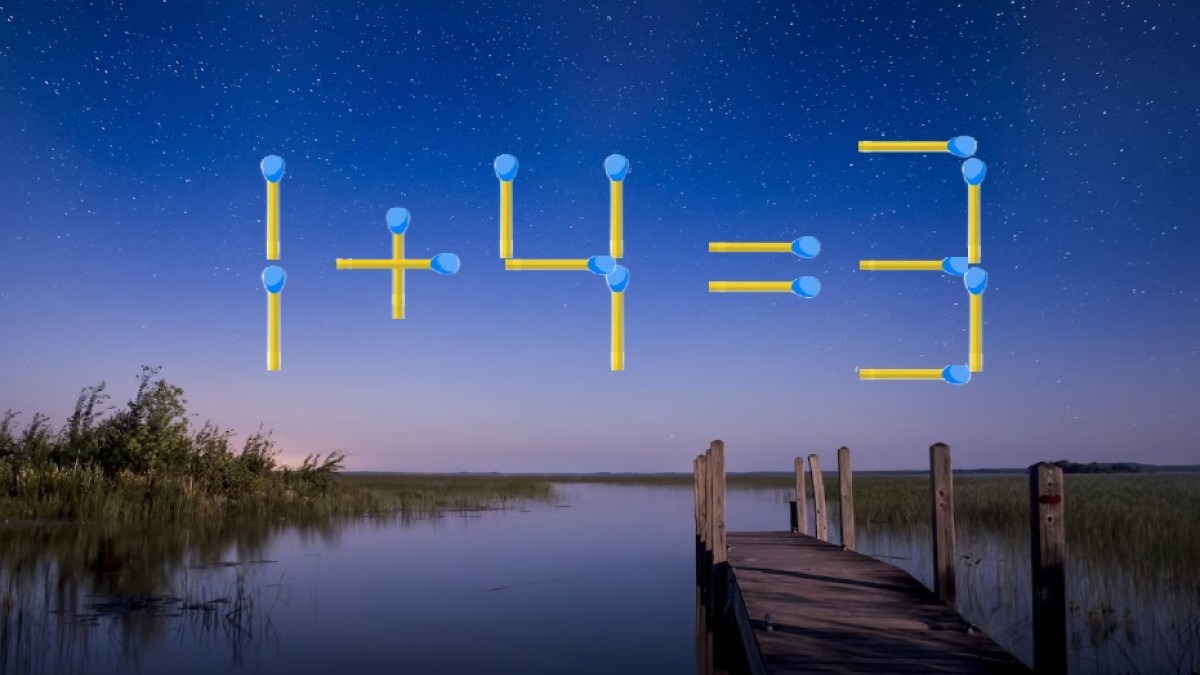 Предлагаем вашему вниманию спичечную перестановку, посмотрите на рисунок. В примере «1+4=3» содержится ошибка, которую может исправить перемещение одной детали. Найдите нужную спичку.
