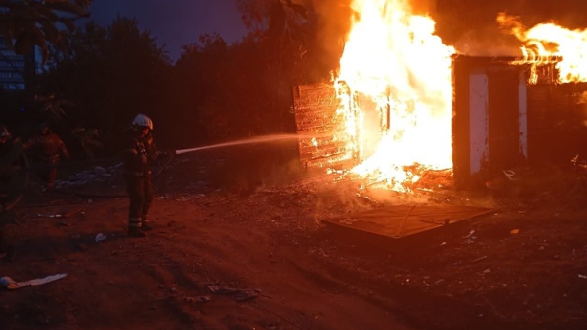 В результате пожара сгорел деревянно-металлический гараж, причина и ущерб устанавливаются.