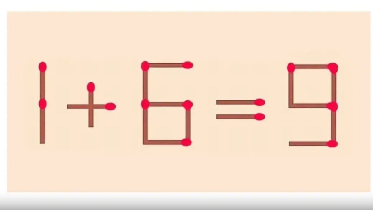 Посмотрите на картинку. На ней из спичек сложено равенство. В нем имеется ошибка. Для ее устранения необходимо переставить 1 спичку.