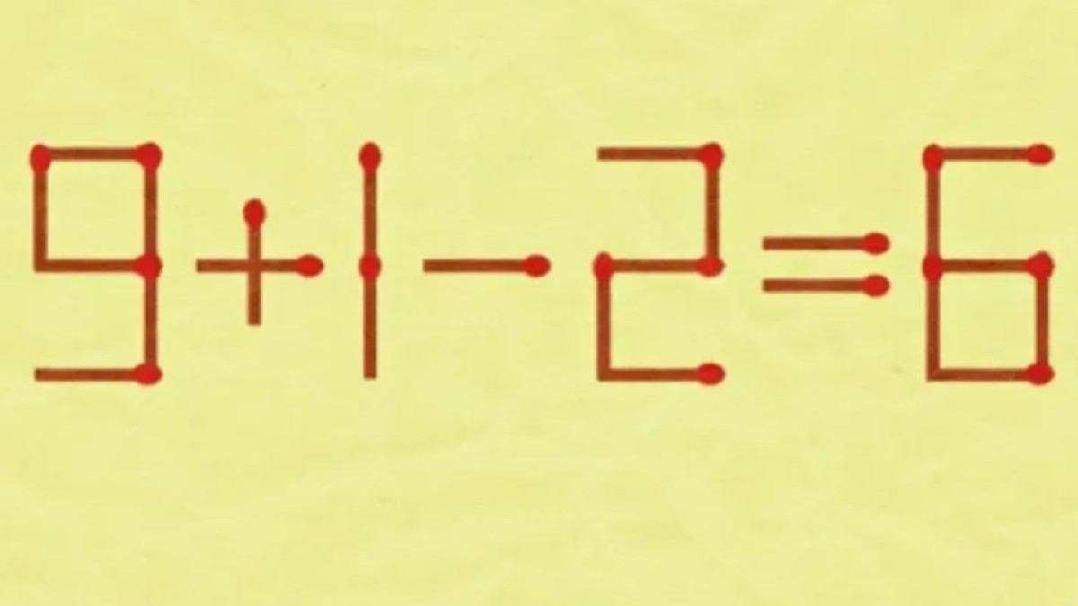 Посмотрите на рисунок, где изображено равенство с ошибкой. Чтобы ее исправить, надо поставить 1 спичку на другое место.