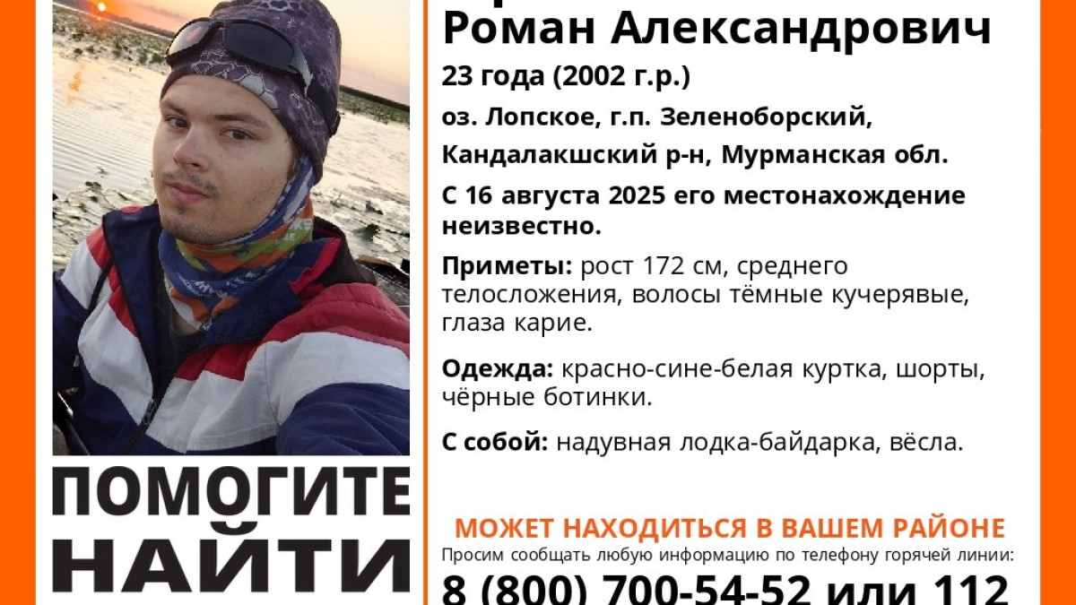 Как сообщает поисковый отряд «ЛизаАлерт», молодой человек, приехавший в Заполярье из Вороежа, не выходит на связь с 16 августа. Он может находиться в Кандалакшском районе.