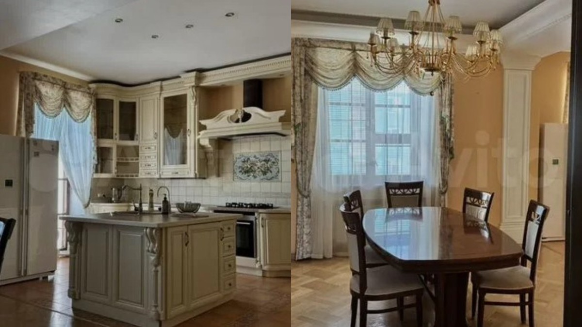 В отделке использованы материалы премиум-класса, мебель и светильники привезены из-за границы, акцентируют в объявлении. В квартире установлена техника — двухкамерный холодильник, посудомоечная машина, плита, вытяжка и микроволновая печь. На полу паркет. Вся мебель и техника останутся новым владельцам.
