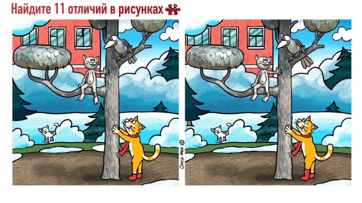 Надо посмотреть на 2 картинки и сравнить их. Между ними есть 11 отличий. Нужно увидеть каждое.
