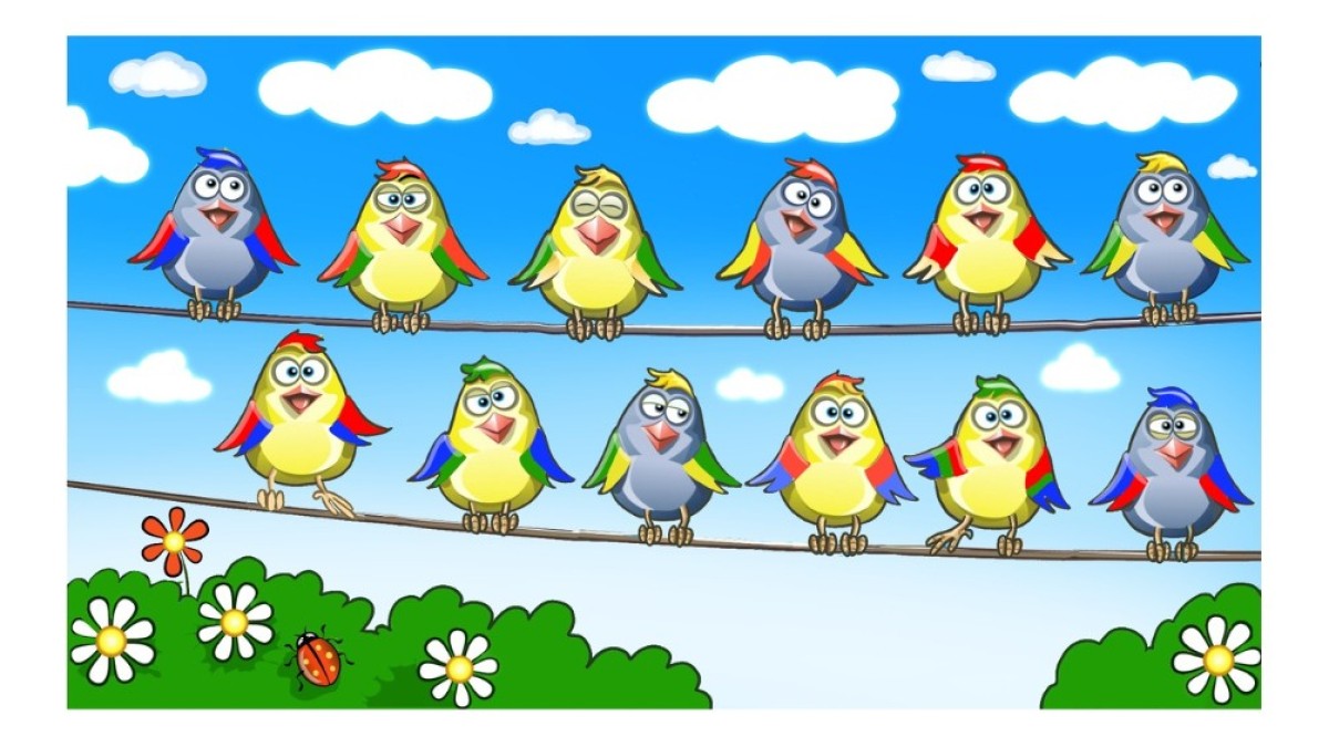 Людям, которые могут похвалиться своей наблюдательностью, не составит труда найти на рисунке 2 птичек — близняшек. У них одинаковый окрас.