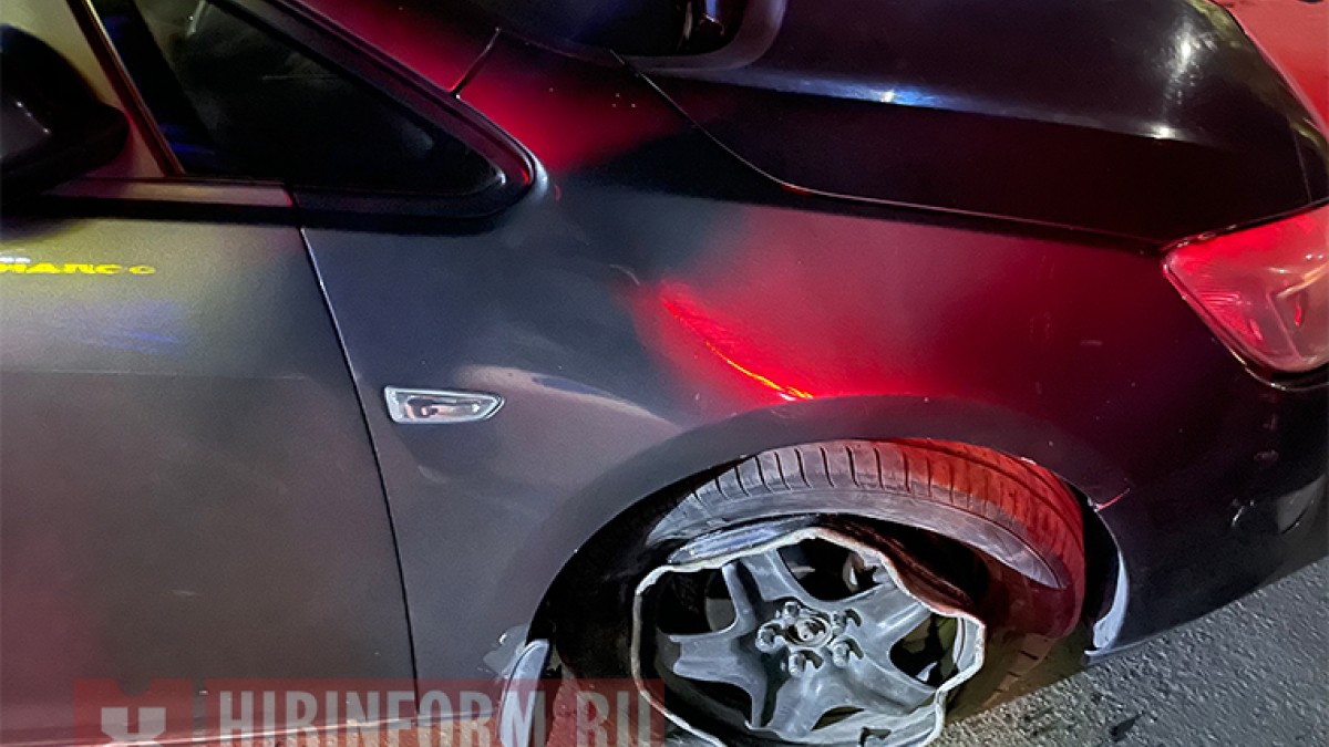 Известно, что подозрительную иномарку, которая колесит по ночному городу, заметили автолюбители в Апатитах. Особое внимание привлекло пробитое переднее правое колесо, несмотря на которое странный водитель продолжал гонять по городу, вылетая на встречную полосу, совершая крутые виражи, пока не влетел в бордюр на парковке торгового центра. Автомобиль отлетел также в припаркованный «Форд».