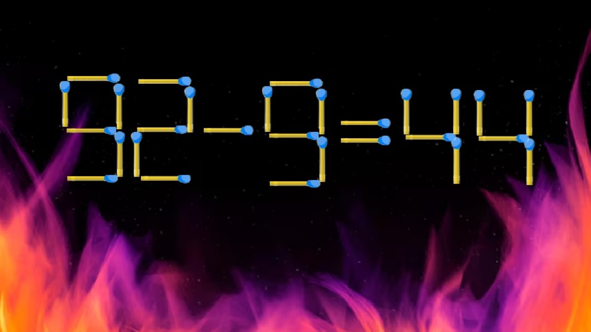 Взгляните на рисунок, из спичек составлена запись «92-9=44». В равенстве намеренно допущена ошибка, но хитрое перемещение всего одной детали исправит эту оплошность. Сможете отыскать верный способ?