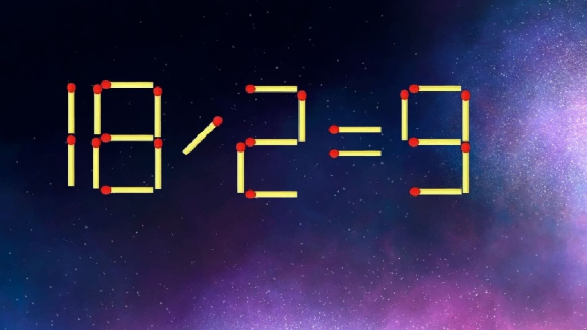 Взгляните на рисунок, вас ожидает равенство «18/2=9». Пример составлен верно, но запись необходимо исправить. Передвиньте одну спичку так, чтобы правила арифметики не пострадали.