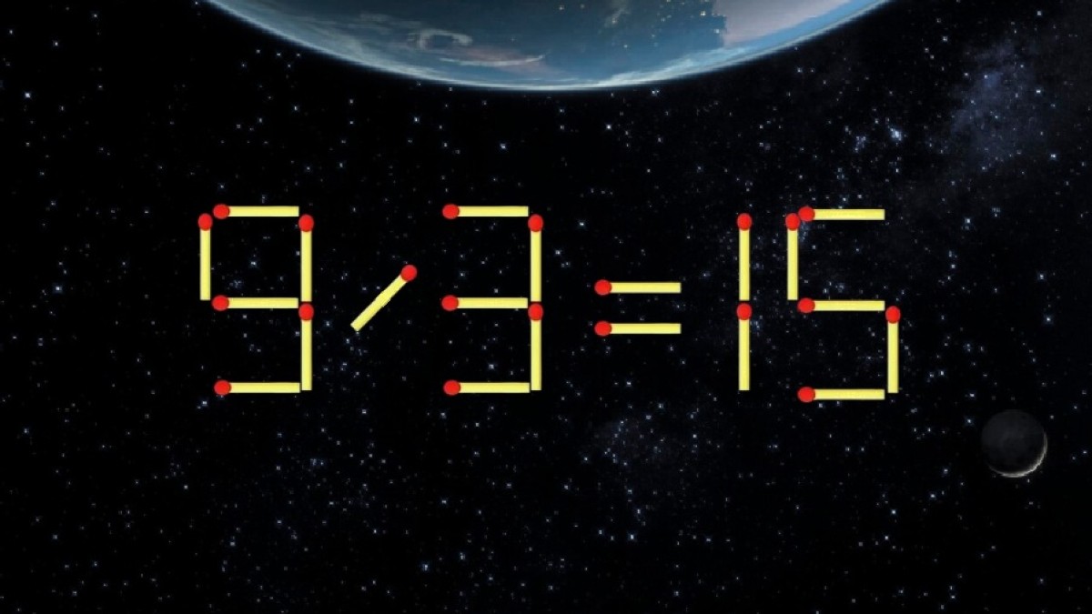 Предлагаем вам справиться с примером, показанном на иллюстрации. В равенство «9/3=15» явно закралась ошибка, давайте исправим запись. Переместите всего одну деталь так, чтобы пример решался верно.