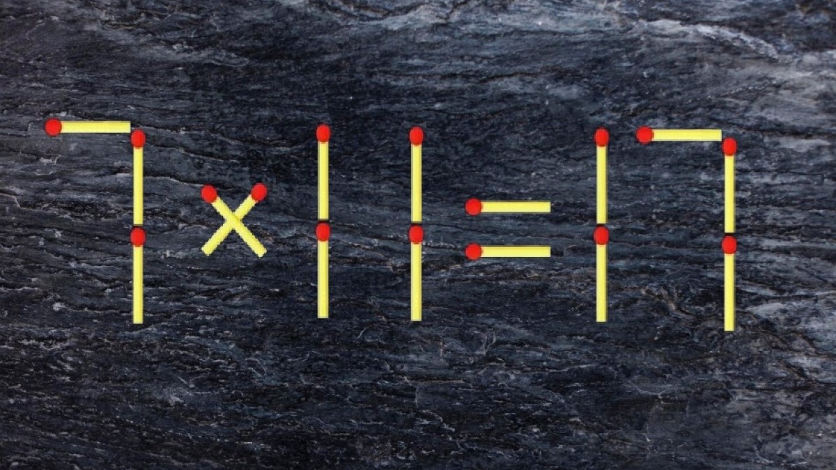 Перед вами классическая загадка на перестановку. В примере «7×11=17» явно содержится ошибка, но запись можно исправить. Передвиньте одну спичку так, чтобы равенство стало верным.