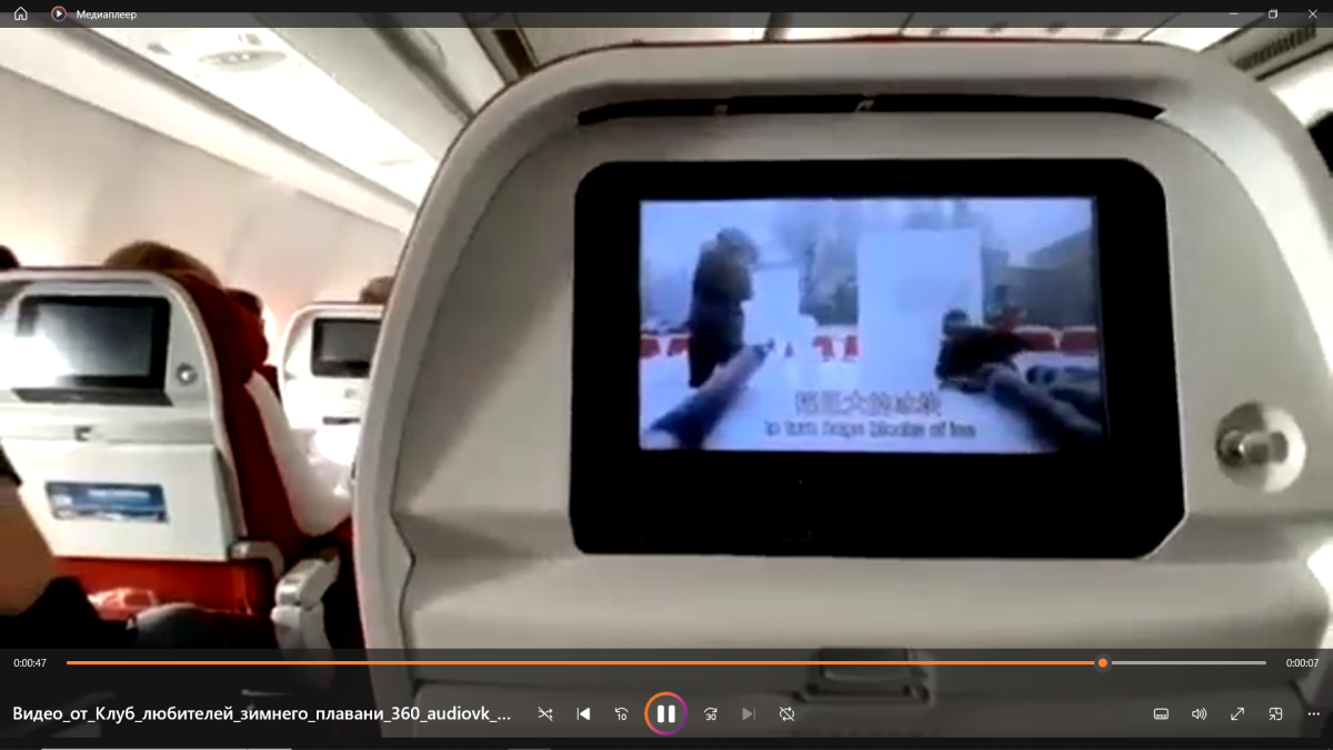 «Любители зимнего плавания прислали видео, снятое на борту самолета китайских авиалиний. На экране пассажирам показывают заплывы участников апатитского клуба любителей зимнего плавания «Садко» на озере Имандра, а также фрагменты шоу-конкурса «Бешеная пила». Далее кадры полярного сияния. Скорее всего, ролик про наш город часть рекламного блока про туризм в Мурманской области», — уточнил Антон Рассказов в сообщении.