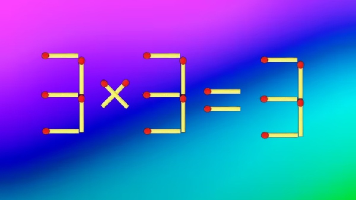 Посмотрите на рисунок, в равенство «3×3=3» явно закралась ошибка. Необходимо исправит запись, передвинув всего одну спичку. Найдите верный способ!