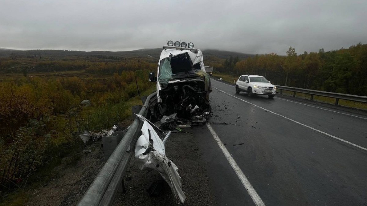«После удара микроавтобус въехал в дорожное ограждение, а грузовик съехал в кювет. Водитель микроавтобуса Mercedes в результате ДТП получил травмы, его госпитализировали в медицинское учреждение», — сообщает Госавтоинспекция Мурманской области.