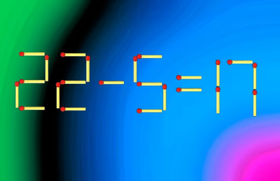 На иллюстрации показано равенство «22+5=11», составленное из спичек. В пример закралась ошибка, но перемещение всего одной детали исправит ситуацию. Включите логику и отыщите верный способ.