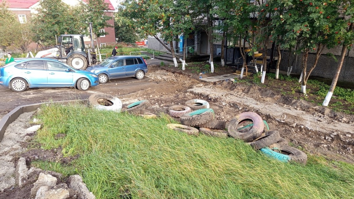 В социальных сетях жители Полярного Мурманской области жалуются на то, что в городе интенсивно ведутся работы по благоустройству, несмотря на то, что уже сентябрь.
