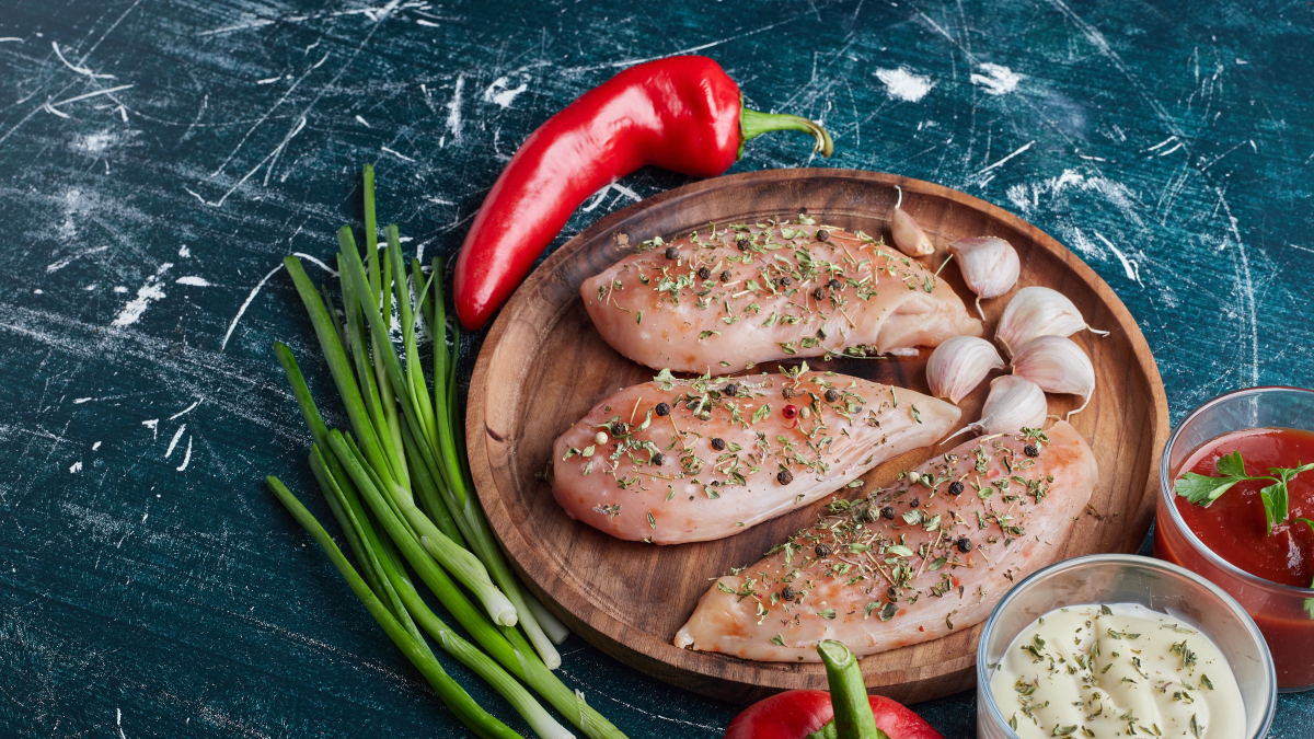 Второй рецепт приготовления — в яичном маринаде. Выбрать можно бёдра или филе. Кусочки обязательно нужно отбить, а затем посолить и поперчить.