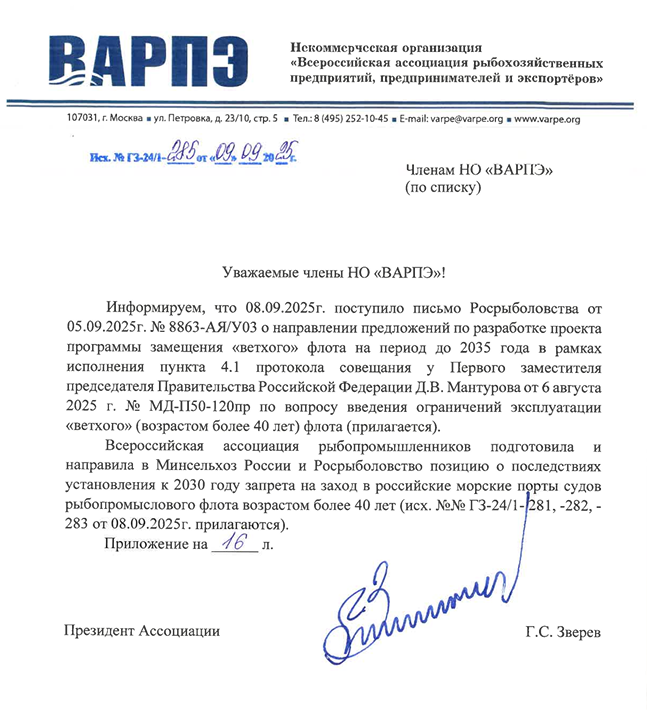 Попытка реализации в законодательстве запрета на эксплуатацию рыбопромысловых судов старше 40 лет поражает своей глупостью и должностной безответственностью. Очевидно, что это приведет к резкому сокращению объемов российской добычи (вылова) водных биологических ресурсов в Охотском, Беринговом, Японском, Баренцевом, Норвежском, Чёрном, Азовском, Каспийском и Балтийском морях, а также в международных и открытых районах Мирового океана. Результатом станет уменьшение поставок на внутренний рынок самых массовых видов рыбы (минтай, сельдь, скумбрия, путассу, мойва, сардина, сайра и др.). Это неизбежно толкнёт вверх цены на отечественные рыбные товары и приведёт к увеличению иностранной рыбной продукции на российском прилавке. Снижение производственных объемов в морском рыболовстве негативно отразится на показателях российского продовольственного экспорта.