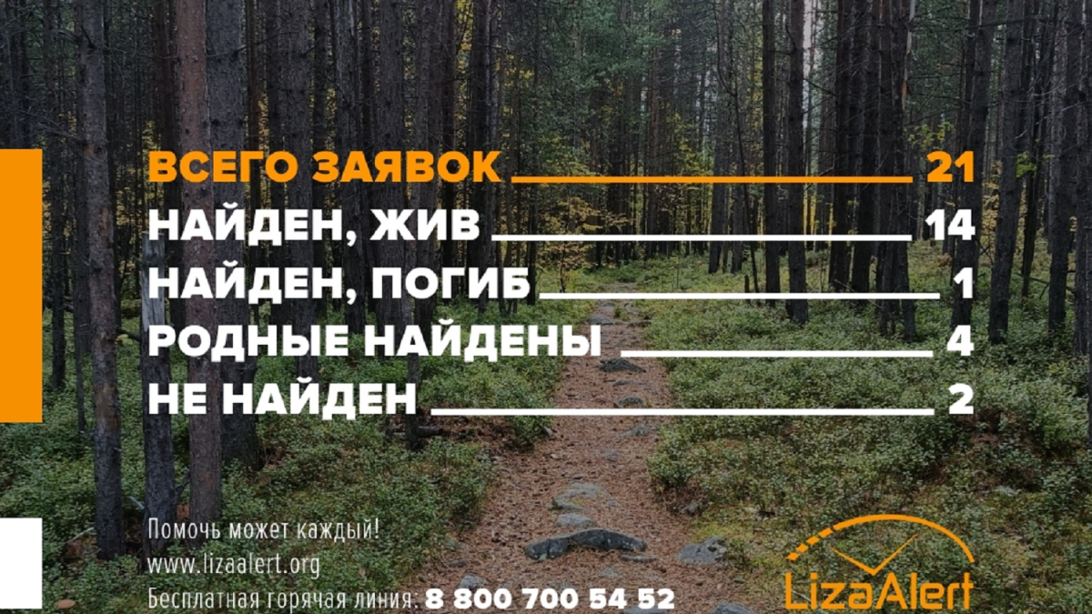 За сентябрь текущего года в поисковой отряд Лиза Алерт Мурманской области поступила 21 заявка о поисках людей, пропавших без вести. В результате слаженных действий добровольцев удалось живыми найти 14 северян.