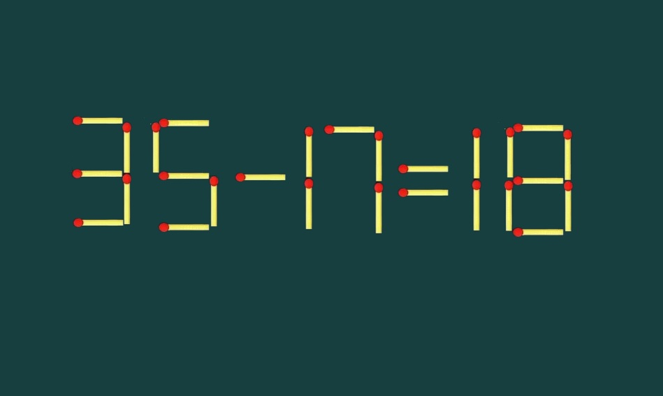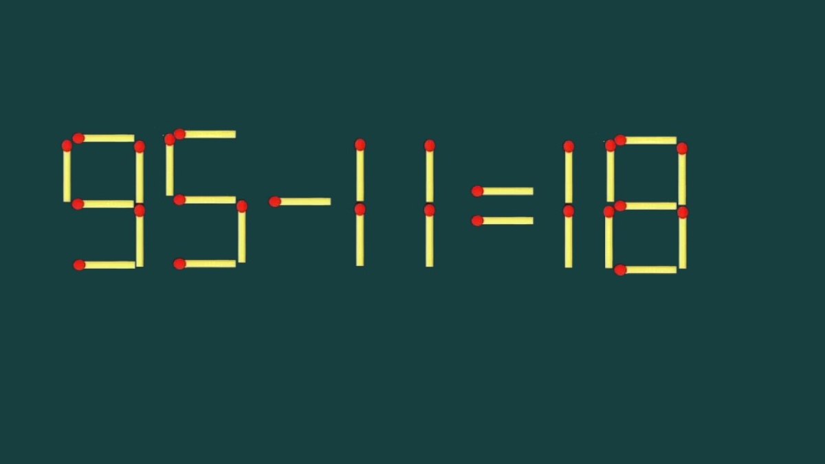 Вот ваше испытание: «95-11=18». Равенство намеренно составлено с ошибкой, только мастера абстрактного мышления увидят решение проблемы. Разрешается передвинуть одну спичку в этой записи.