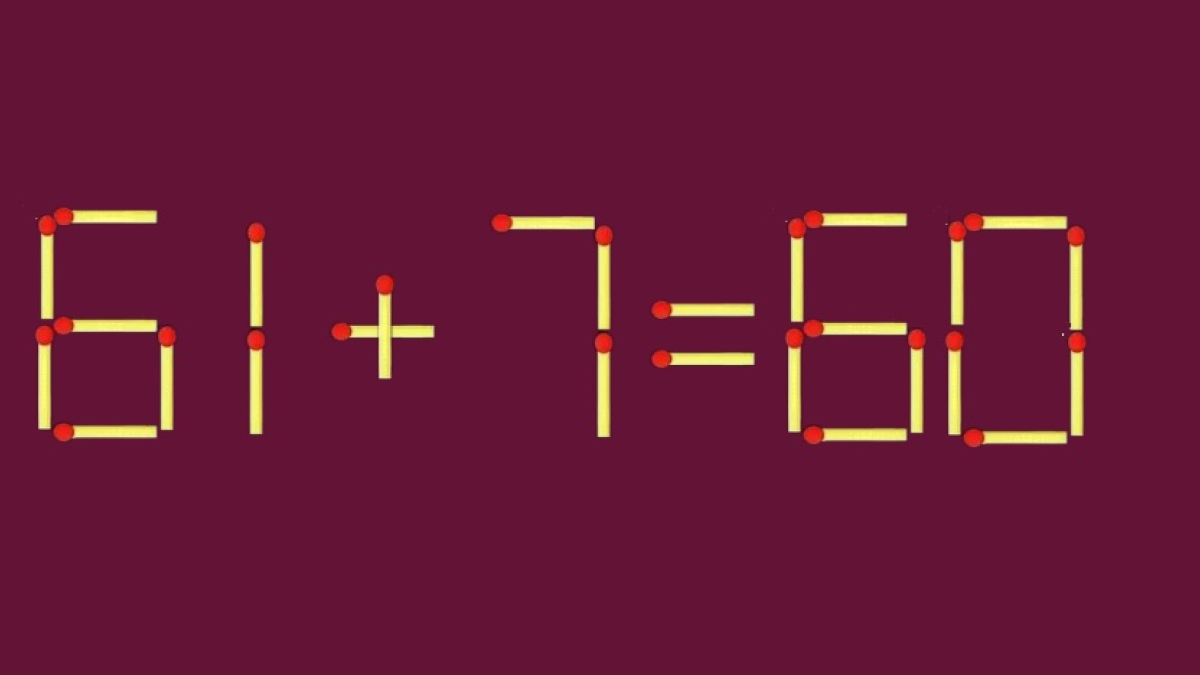 В вашем распоряжении равенство «61+7=60», составленное из спичек. В пример явно закралась ошибка, но перестановка одной детали исправит ситуацию. Отыщите виновницу немедленно.