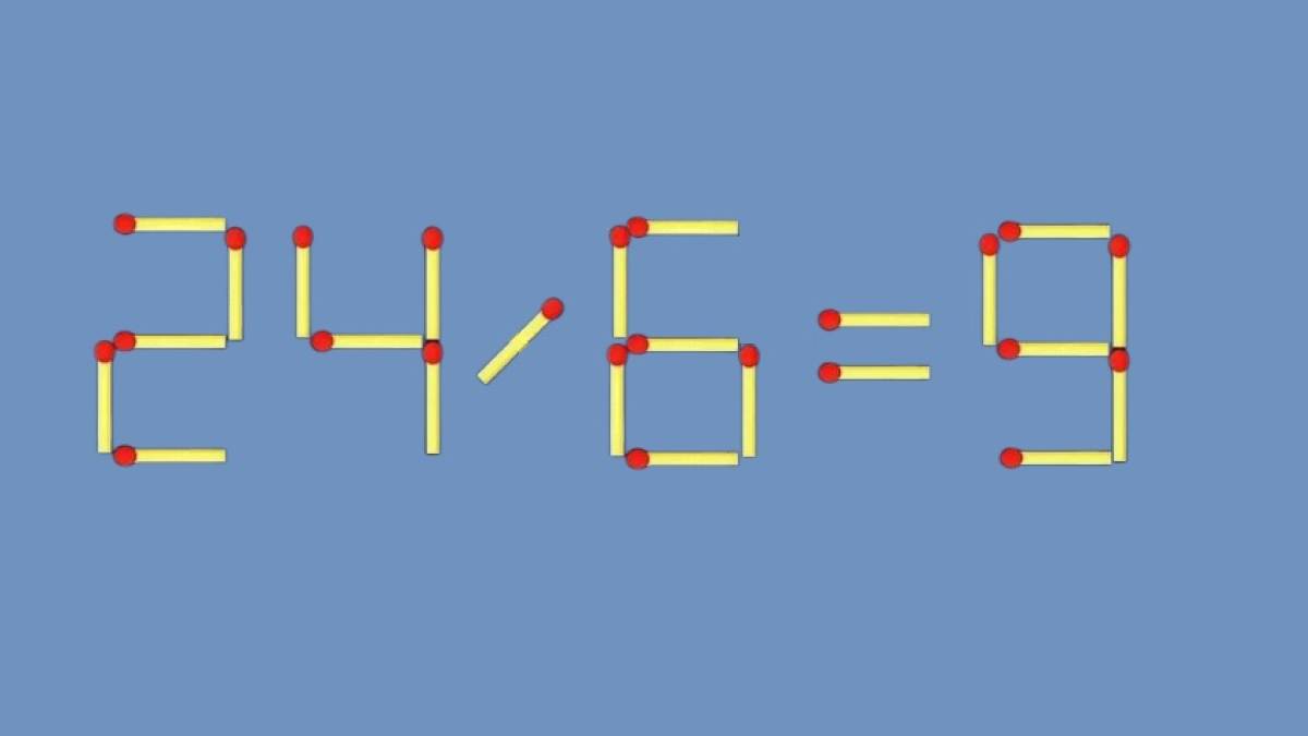 Взгляните на равенство «24/6=9», в пример явно закралась ошибка. Придется передвинуть одну спичку в этой записи, чтобы вычисления стали верными. Вам такое по силам?