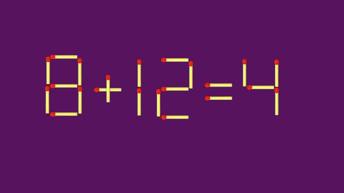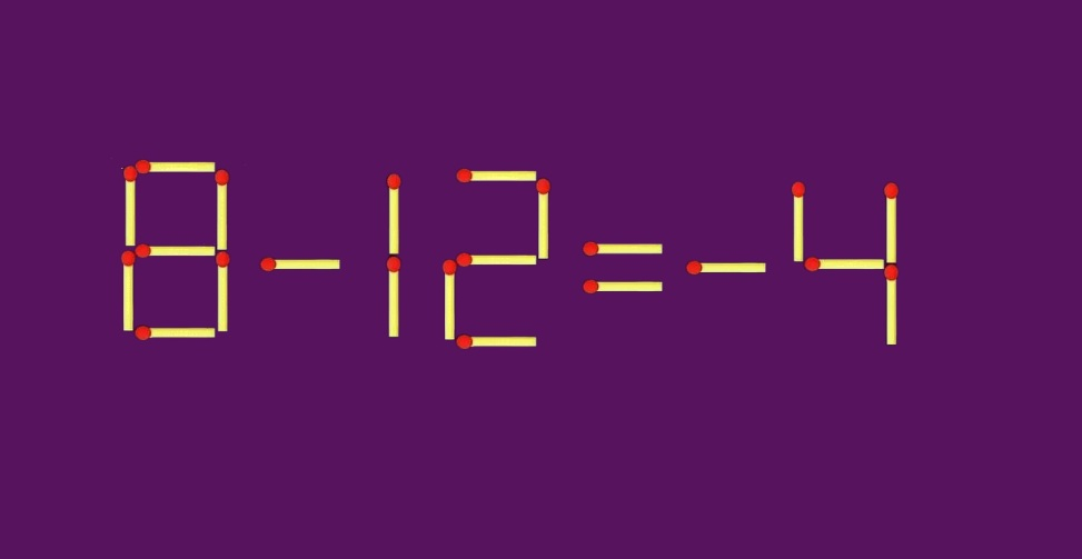 Посмотрите на изображение, вот пример «8+12=4», который ждет хитрого мыслителя. В записи намеренно допущена ошибка, вам предстоит передвинуть одну спичку так, чтобы равенство стало верным. Это реально, не сомневайтесь!