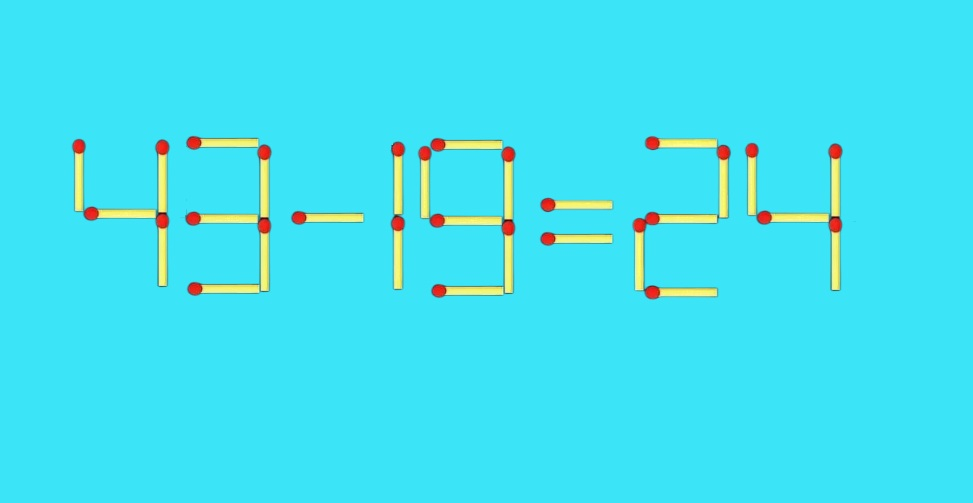 Не дайте себя запутать, изменения коснутся всего одной цифры. Сможете превратить «6» в «9»? настойчивые личности уже проверяют верное решение. У нас получилась запись «43-19=24».