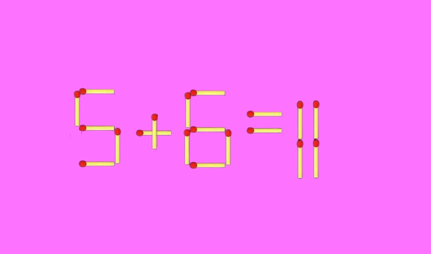 Подключите стратегическое мышление, отгадка кроется у всех на виду. Вот мы из второй шестёрки делаем цифру «5», а действие меняем на сложение. Как вам запись «6+5=11»? Ваша сообразительность всем очевидна.
