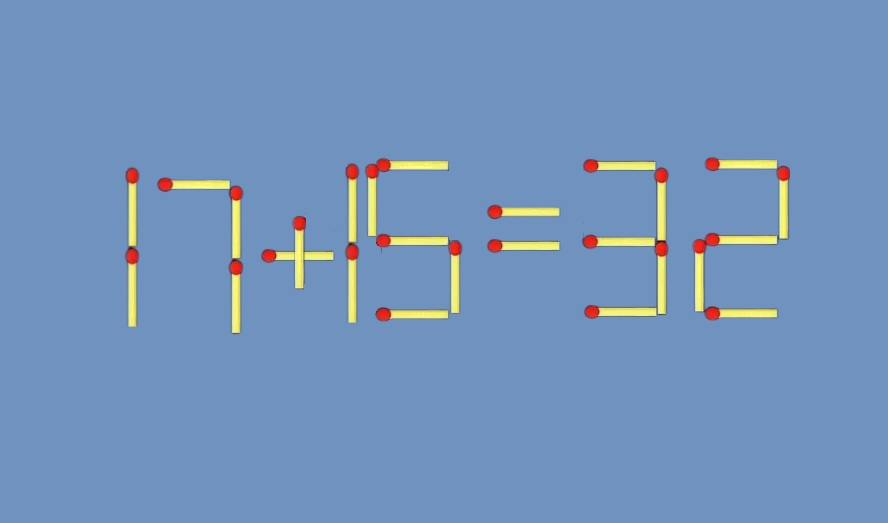 Нетерпеливым личностям порою не верится, что решение бывает простым и эффектным. Вот смотрите, цифра «9» превращается в тройку, а из первого слагаемого делаем «17». Если ваш котелок варит ещё быстрее, то запись «17+15=32» уже давно готова.