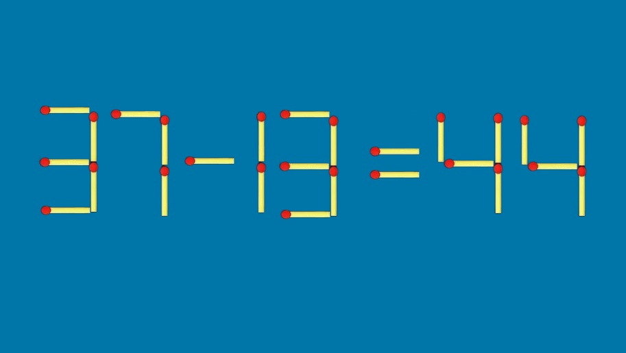 Проще всего начать перемены с первой цифры в записи. Отберите спичку у девятки и подарите эту «шляпку» единице. Посмотрим на новое равенство «57-13=44», теперь математика на нас не в обиде.