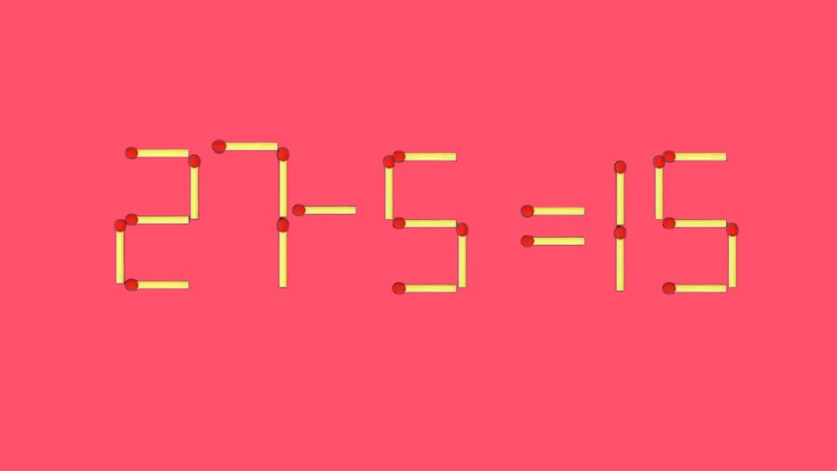 Взгляните на рисунок, спичечное равенство «27-5=15» ждёт своего спасителя. В вычисления забралась досадная ошибка, эту оплошность поможет исправить перемещение всего одной спички. По силам ли вам отыскать нужный способ?