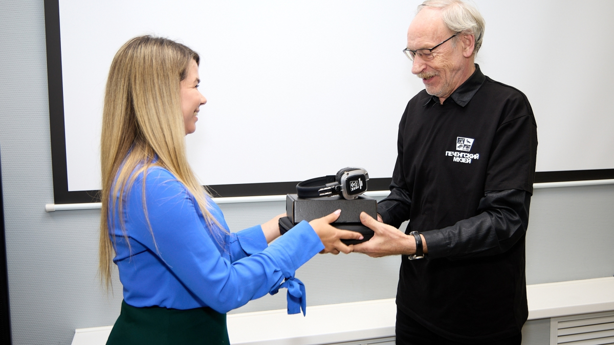 Гости Историко-краеведческого музея Печенгского округа смогут посетить иммерсивный аудиоспектакль «Десятый удар». Наушники и подарочную запись торжественно вручили представителям администрации музея участники Центра «Вторая школа».