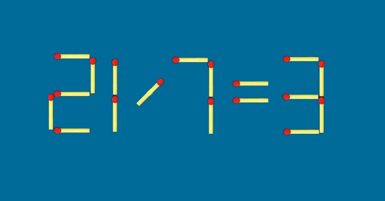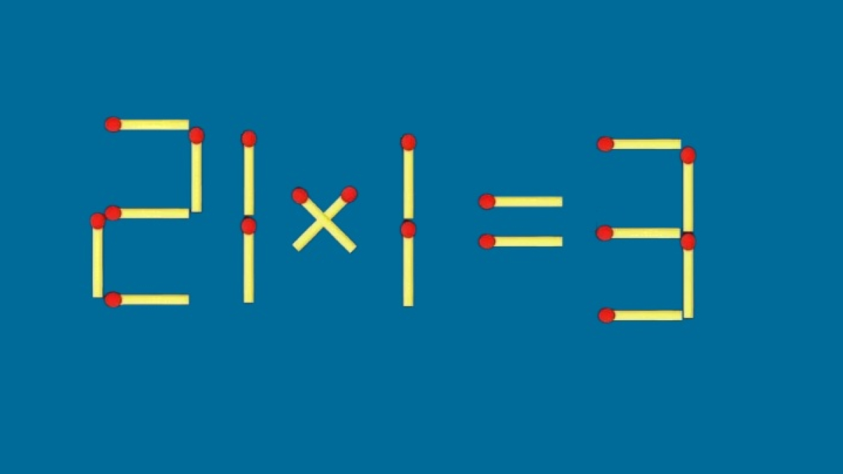 На повестке дня каверзный пример, взгляните на иллюстрацию. В равенстве «21×1=3» намеренно допущена ошибка, только острый ум заметит возможность, которую предоставляет одна из спичек в этой записи. Необходимо переместить всего одну деталь, чтобы получить верное равенство.