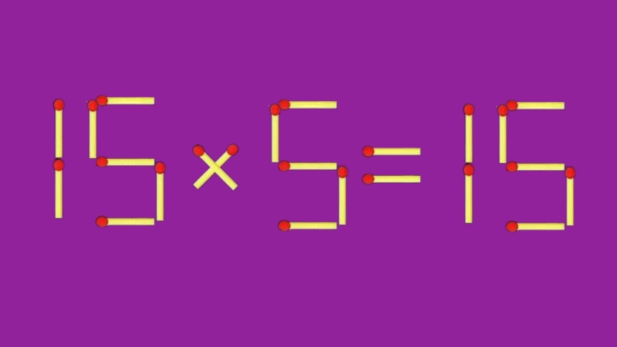 Внимание на иллюстрацию, хитрое равенство ждёт ваших действий. В записи «15×5=15» явно допущена ошибка, но перестановка всего одной спички исправит эту оплошность. Проявите свои логические способности и отыщите нужную комбинацию.
