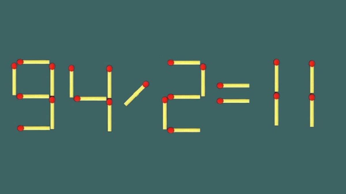 Посмотрите на рисунок, в равенство «94/2=11» закралась ошибка. Но стоит переставить всего один элемент, как запись заиграет новыми красками, вычисления станут верными. Пошевелите извилинами, чтобы найти решение.