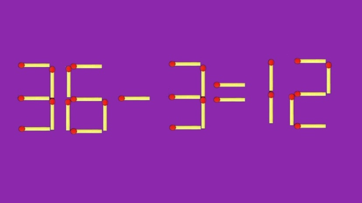 Посмотрите на иллюстрацию, пример «36-3=12» намеренно составлен с ошибкой. Достаточно передвинуть всего одну спичку в записи, и вычисления сразу станут верными. Сможете ли вы отыскать такой способ?